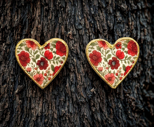 Floral Heart Stud Earrings - Vintage Rose Garden